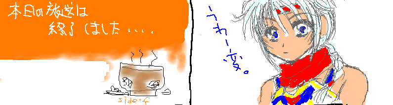 力尽きた明日葉…(笑)ついに放送が終了してしまいしたっ。絵板滞在残り時間、10分を切っているので…慌てて色塗りを開始したkikuさんに、皆様手に汗握って見つめて居りましたですっ!