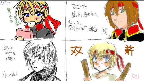 唐突なお絵描き大会でしたが、お付き合い下さいましてありがとうございました、観●さん、k●kuさん、宝●さん、あ●らさんっ。絵板で描くのに夢中になると…話しが出来ないので(当然…かっ)次回は文字茶にしたいですっ。また、お越し下さいませぇ(笑)