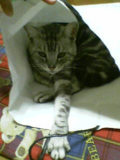 彼は紙袋が大好き!よく、潜り込むのだそうです。