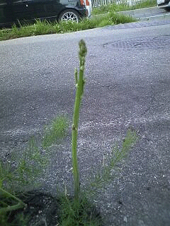 ど根性君の中心から外れた場所に、新たなアスパラが