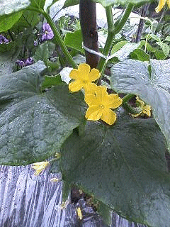 キュウリも、トマトも、カボチャも、花の色が黄色、